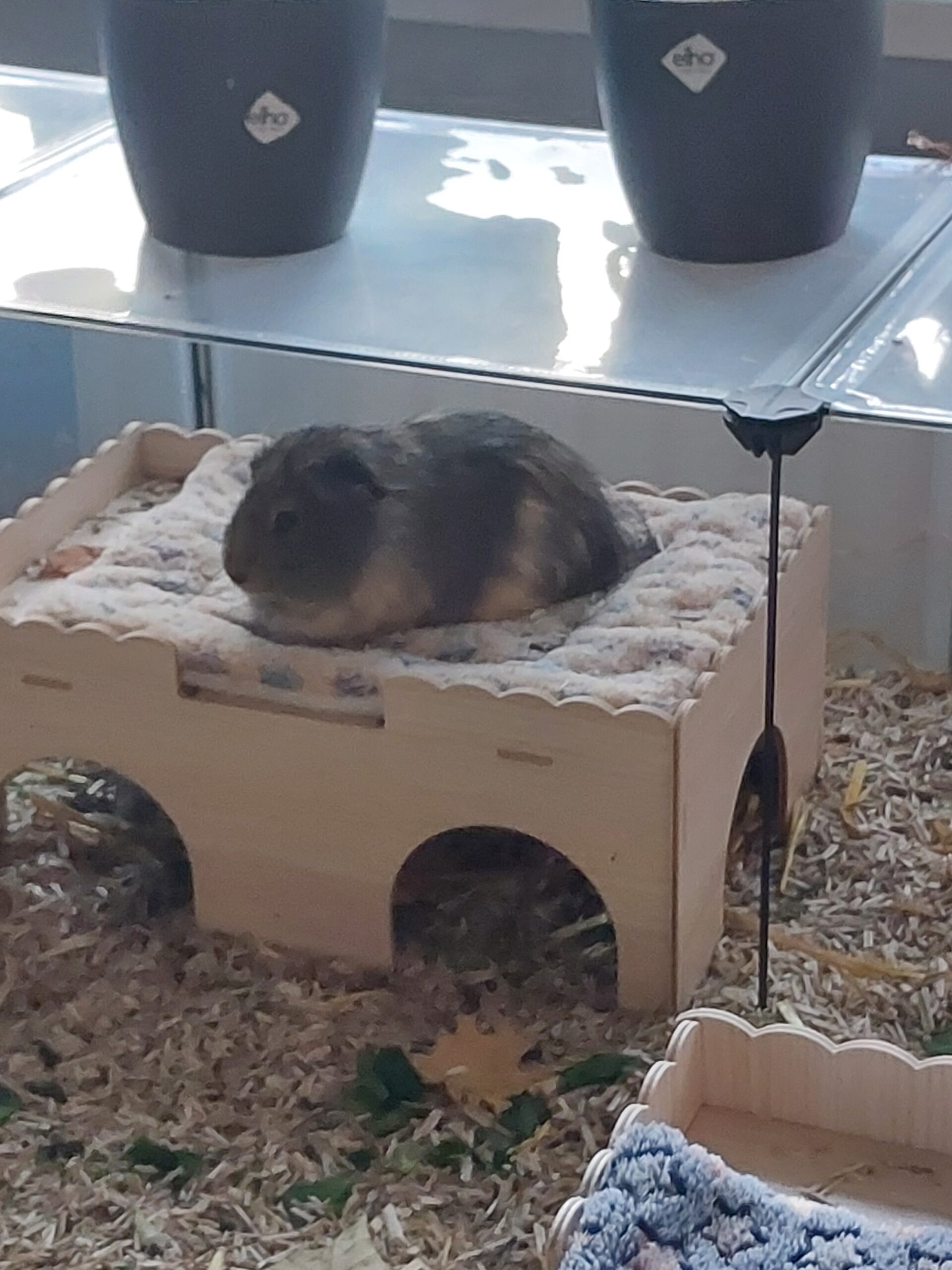 – er lebt bei uns drinnen, bekommt jeden Tag frisches Futter, Salat und Co, Kohl mag er nicht unbedingt